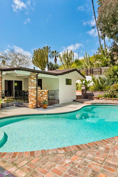 Located in the highly desirable Lake Hollywood community, this stunning and spacious 5-bedroom, 3-bathroom home has been well maintained and is move-in ready. It features a spacious living room, fireplace, and a well-appointed kitchen that is open to the living room, dining area, and bar. The large formal dining area opens to the lovely, secluded backyard pool and covered patio deck with a BBQ. Perfect for intimate dining or a large party entertaining. The primary suite has a sumptuous bath with a separate shower and has direct access to the backyard for late-night dips in the pool. All the bedrooms are spacious. The 5th bedroom is located on the north side of the home, making it perfect for adult kids, an office, or a workout room. A super-large laundry room with space for storage. There is direct entry access from the two-car garage. All of this is on a massive and gated 12,000+ lot! The location is fantastic, with easy access to downtown LA, the Westside, hiking trails to the Hollywood Sign and Wisdom Tree hike, the Hollywood Lake reservoir, Hollywood Bowl, shops, and restaurants. Close to all the major studios, including Universal, Warner Bros, Disney, Netflix, Whole Foods, Trader Joe's, and more. Easy to show!